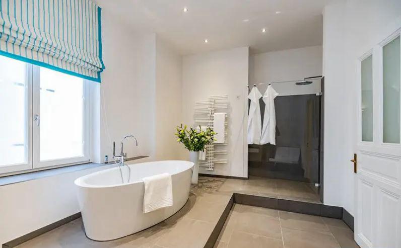 Vom zum Innenhof führenden Flur, gehen die weiteren Zimmer, zwei Bäder und diverse Abstellräume ab. Das großzügige Hauptbad wurde mit einer freistehenden Badewanne und einer Walk-In-Dusche gestaltet und entspricht dem heutigen Verständnis von Luxus. Ein zweites Duschbad ist gegenüber vorhanden. Vom derzeitigen Arbeitszimmer ist der große Balkon mit Ostausrichtung zu erreichen und lädt zu entspannten Morgenstunden, dem ersten Kaffee am Tage im Freien ein und bietet zusätzlichen Wohnkomfort.